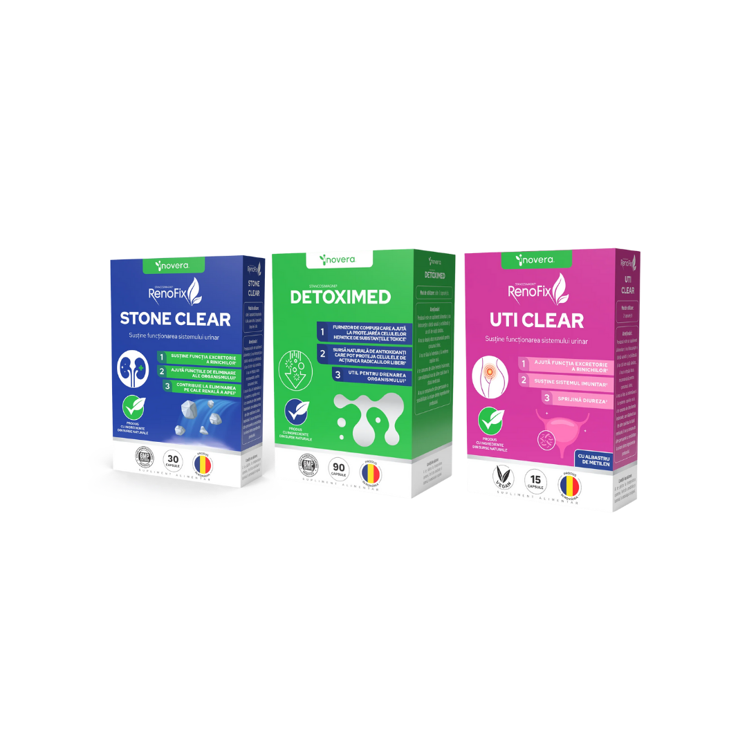 Am luat pachetul complet (Stone Clear + UTI Clear + Detoximed) pentru disconfort urinar și senzația de presiune. În 2–3 zile m-am simțit mult mai bine, iar urinările dese s-au rărit.